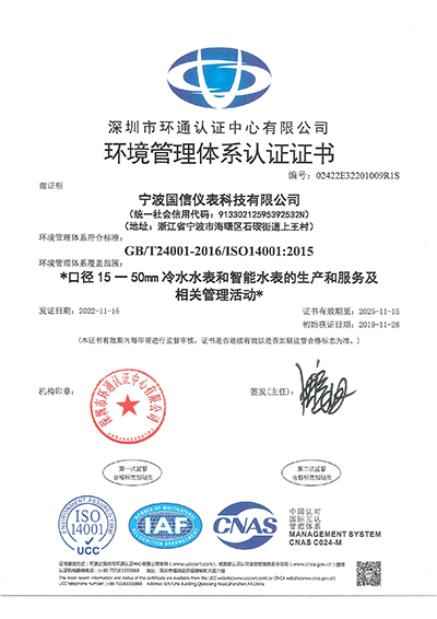 ISO14001環(huán)境管理體系認證證書