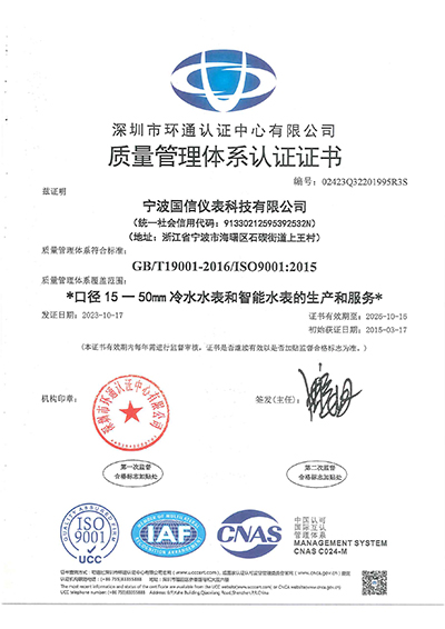 ISO9001質(zhì)量管理體系認證證書