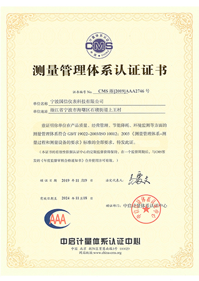 ISO10012測量管理體系認證證書